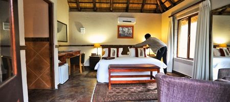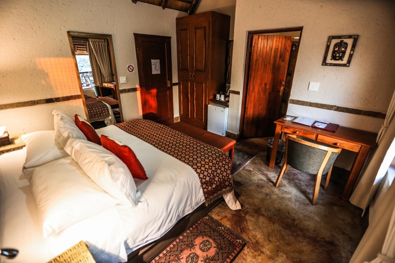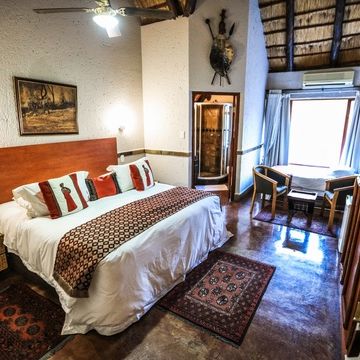 Im Standard Doppelzimmer haben zwei erwachsene Personen ausreichend Platz, es ist großzügig und 3 unserer Doppelzimmer bieten die Möglichkeit, durch eine Aufbettung, eine weitere Schlafmöglichkeit für einen dritten Gast zu schaffen. Die Doppelzimmer befinden sich im ersten Stock des Haupthauses mit einem erhöhten Blick auf das afrikanische Buschland. Der Raum besteht aus einem Schlafzimmer, eingerichtet mit einem King Size Bett und einem Einzelbett.